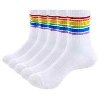 YUEDGE Womens and Mens Striped Socks Breathable Wicking Tall Gym Tennis Running Athletic Cotton Mid Calf Tube Socks 5 Pairs