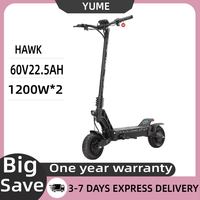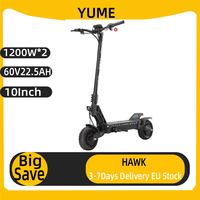 Hot Selling Yume Hawk Electric Scooter 1200W*2 Motor 60V 22.5Ah Battery 70km Range 10 Inch Tire Foldable E-Scooter