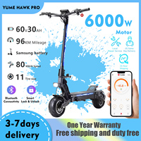 YUME Hawk Pro 6000W Dual Motor Electric Scooter 85 km/h Max Speed NFC Display 60V-30Ah Battery 100KM Max Range