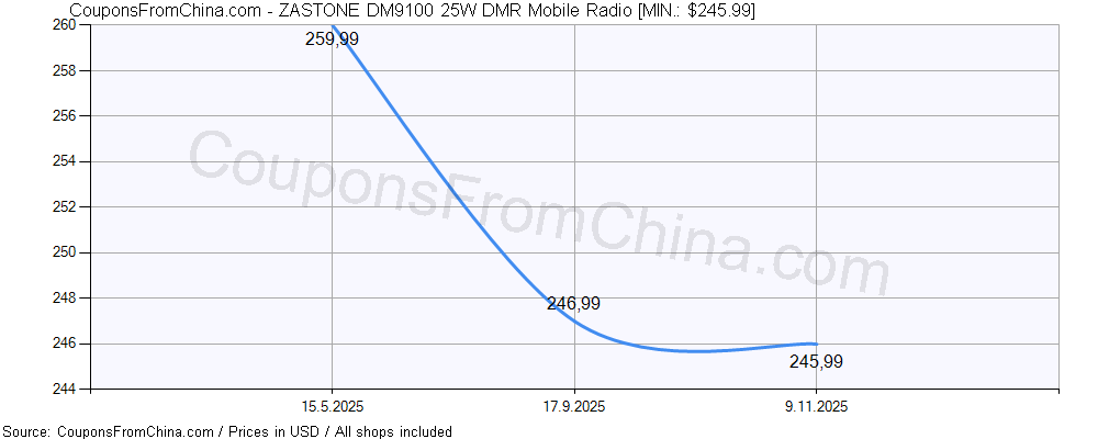 Check out price history chart (for all/most countries) for ZASTONE DM9100 25W DMR Mobile Radio. The lowest price was: $245.99.
