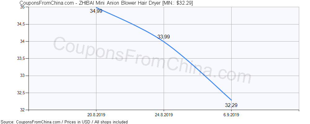 Price history (for all/most countries) for ZHIBAI Mini Anion Blower Hair Dryer is here. The lowest price was: $32.29.